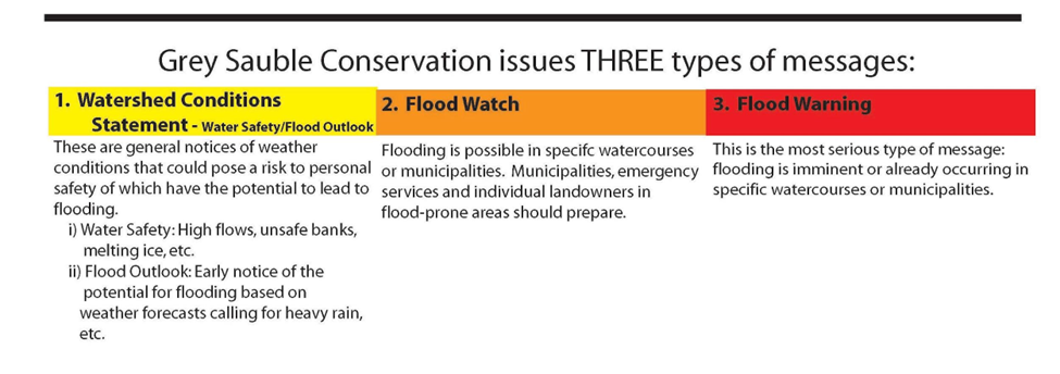 Grey Sauble Conservation Authority (GSCA) has downgraded our Flood Watch to a Watershed Conditions Statement (Flood Outlook) for all municipalities within the watershed. This Statement replaces all previous flood messaging from our office.